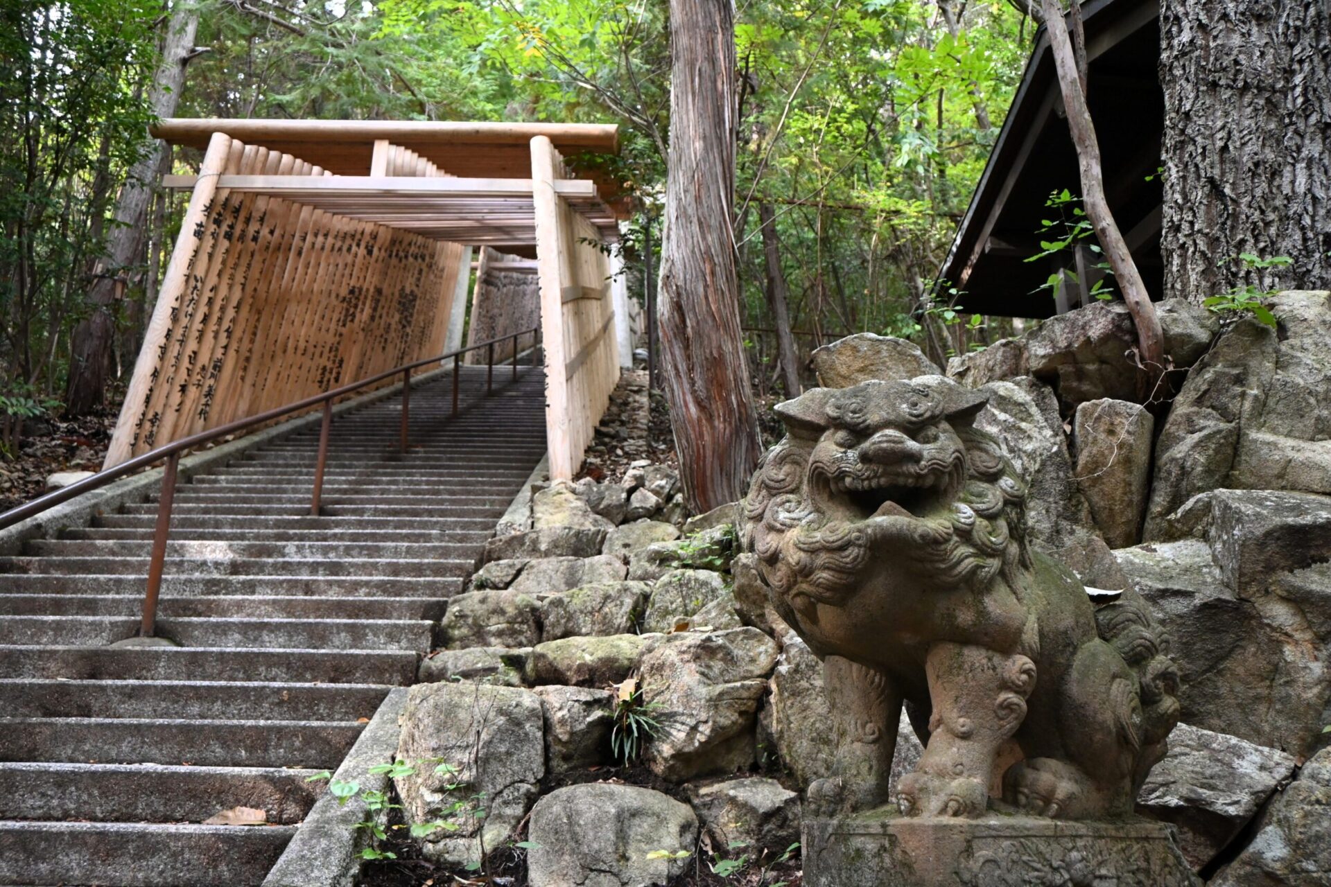 Jusqu’au début du XXᵉ siècle, plus d’un millier de torii étaient alignés sur la voie d’accès au sanctuaire. Bien qu’ils soient peut-être moins impressionnants que les célèbres torii vermillon du sanctuaire Fushimi Inari à Kyoto, les torii en bois brut, qui semblent avoir été offerts récemment, sont magnifiquement alignés.