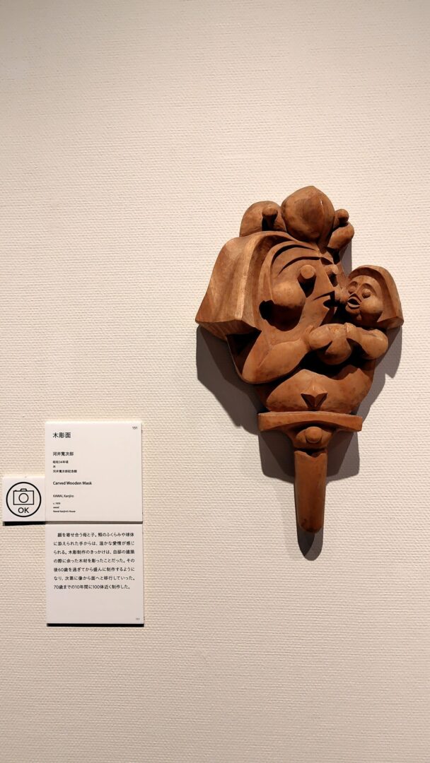 À Kyoto, le mouvement mingei s’est épanoui dès ses débuts. Kanjiro Kawai (1890-1966) a été une figure centrale de ce mouvement, s’impliquant non seulement dans la céramique/poterie, mais aussi dans la conception des espaces de vie, tels que l’architecture et le mobilier. De nombreuses œuvres de Kawai étaient également exposées lors de cette exposition. Si vous vous intéressez à ses œuvres, je vous recommande vivement de visiter le Musée commémoratif de Kanjiro Kawai, situé à Gojozaka. C’est son ancienne résidence, qu’il a conçue lui-même, et on peut y percevoir sa propre esthétique unique.