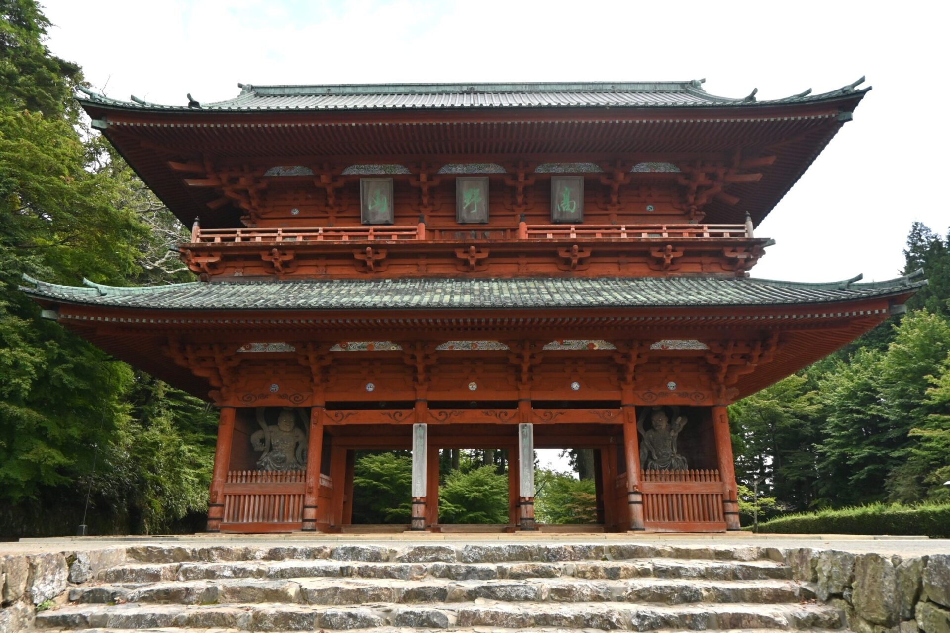La plupart des touristes ne s’arrêtent pas ici, pourtant cette imposante porte à deux étages, qui abrite une paire de statues de gardiens, marque l’entrée du mont Koya. Son architecture magnifique d’un rouge vermillon vous impressionnera. Le Danjo Garan se trouve à seulement 10 minutes à pied de là. C’est donc le point de départ idéal pour une exploration du mont Koya.